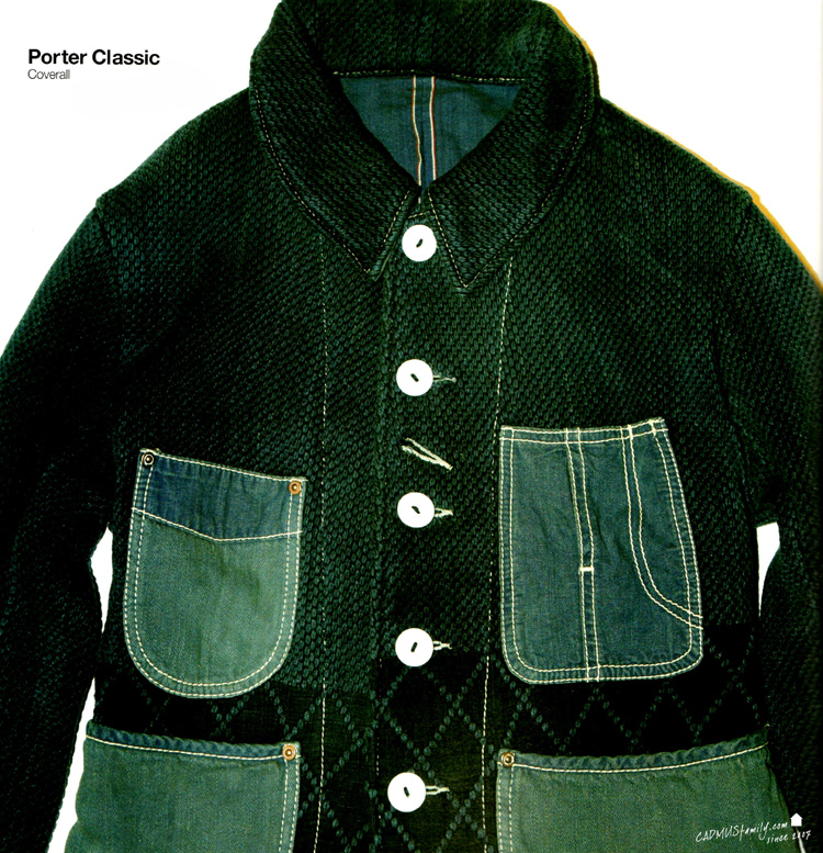 I like the way the body of this coverall is made of a material other than denim. There is very little info about this jacket, but the material does look heavy. Interestingly, the lining still is denim/chambray and you can see the selvage near the collar area. More info here.